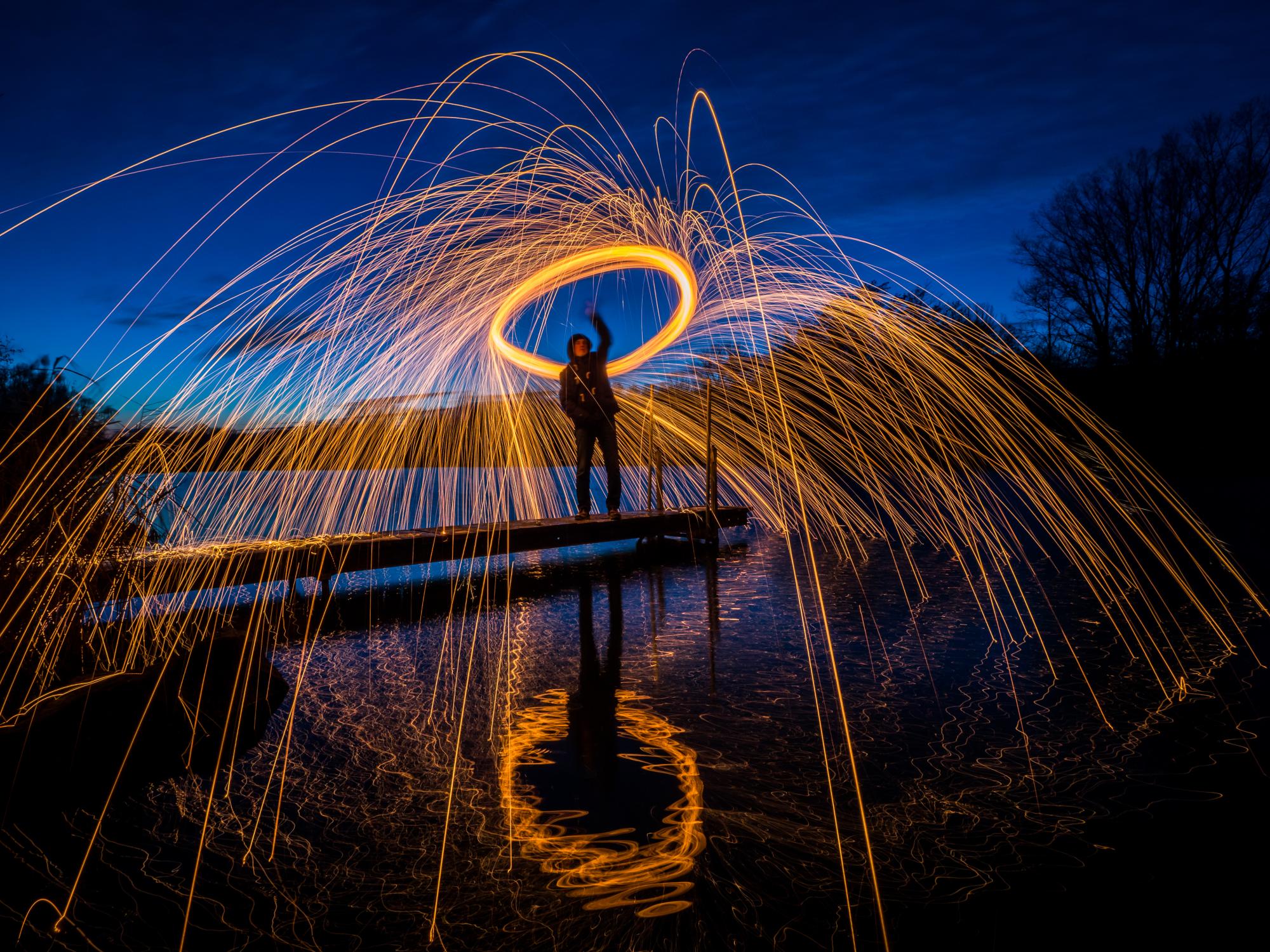 Brennende Stahlwolle